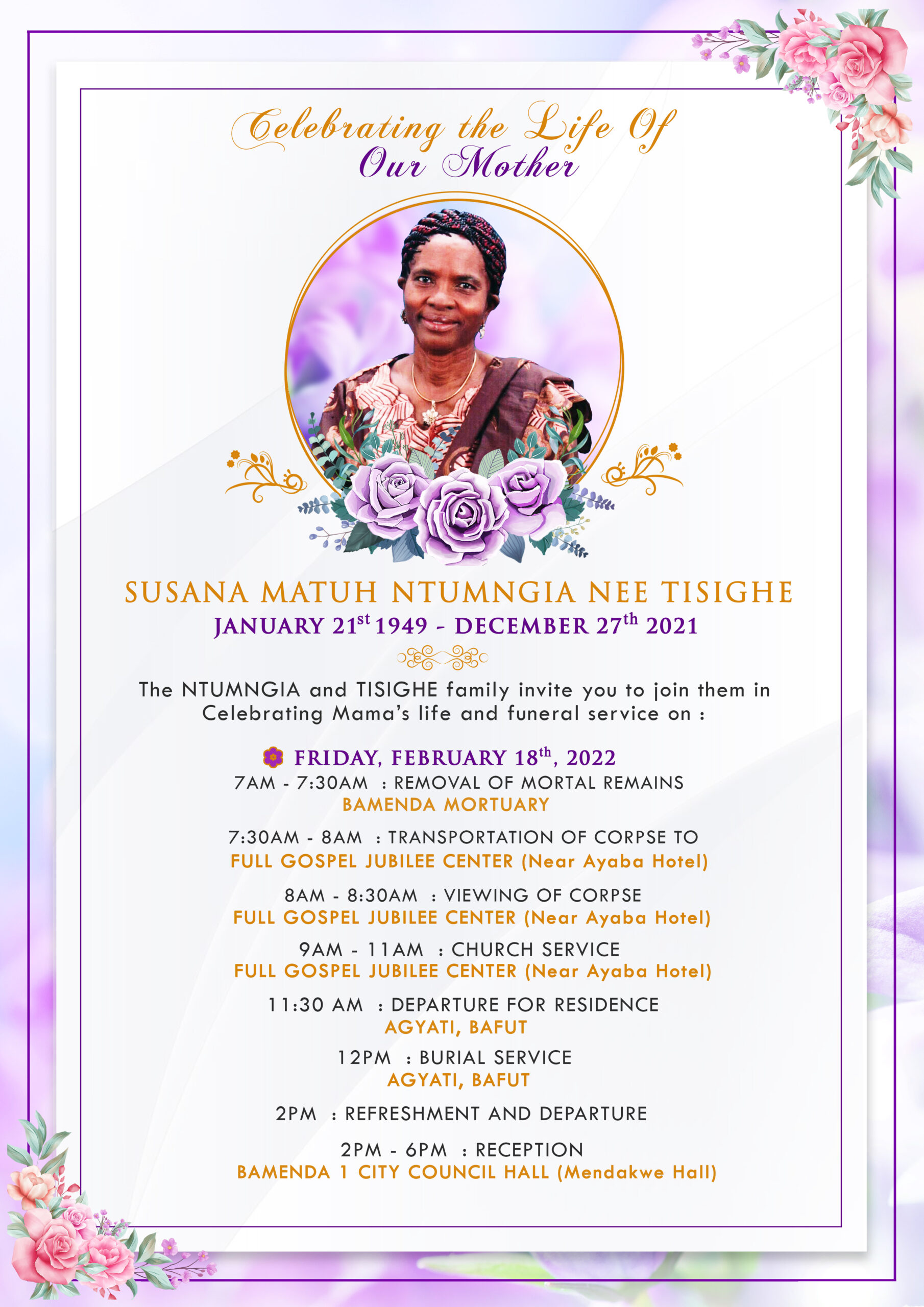 FUNERAL PROGRAM for Mama Susana Matuh Ntumngia née Tisighe